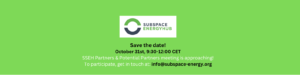 We are happy to inform you that the next SubSpace Energy Hub “Partners and potential Partners meeting” (online) is approaching, and is going to be held on October 31st, 2024, 9:30-12:00 CET.